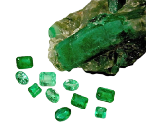 The word “emerald” comes from smaragdos, ancient Greek for a green gem. Emerald is the green to bluish green variety of beryl, a mineral species that also includes aquamarine as well as beryl in other colors.
